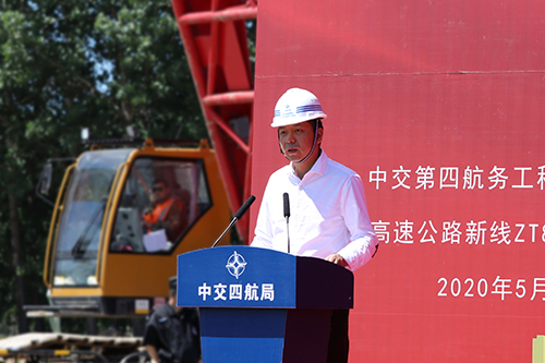 王偉智在講話中向河北雄安榮烏高速公路有限公司對(duì)項(xiàng)目工作的大力支持和幫助表示感謝,并對(duì)首榀箱梁成功架設(shè)表示祝賀。他表示,榮烏高速公路新線ZT8合同項(xiàng)目是公司在雄安新區(qū)承接的首個(gè)工程項(xiàng)目,公司始終對(duì)項(xiàng)目建設(shè)的緊迫性和重大意義有著清醒的認(rèn)識(shí),高度重視項(xiàng)目建設(shè)各項(xiàng)工作。他指出,項(xiàng)目建設(shè)團(tuán)隊(duì)自進(jìn)場(chǎng)以來持續(xù)高質(zhì)量推進(jìn)項(xiàng)目建設(shè),尤其是今年年初以來,在新冠疫情的嚴(yán)峻考驗(yàn)下,項(xiàng)目一手抓疫情防控,一手抓復(fù)產(chǎn)復(fù)工,克服多種不利因素,率先復(fù)工達(dá)產(chǎn),迅速掀起勞動(dòng)競(jìng)賽熱潮,成功按計(jì)劃完成各項(xiàng)工程節(jié)點(diǎn)目標(biāo),充分彰顯了積極踐行國(guó)家戰(zhàn)略,勇于擔(dān)當(dāng)時(shí)代使命的央企形象。他表示,四航建設(shè)者們有能力、有決心、有信心安全、優(yōu)質(zhì)、高效地建設(shè)好榮烏高速項(xiàng)目。