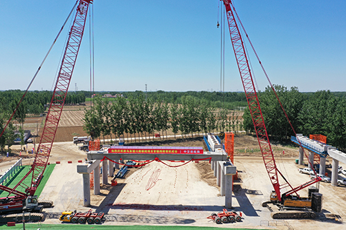 首榀箱梁架設(shè)儀式現(xiàn)場(chǎng)